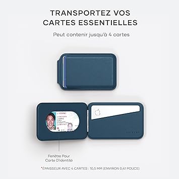 • FIXATION ROBUSTE – Avec une force magnétique de 900 g, ce porte-cartes se fixe solidement à l’iPhone, contient jusqu’à 4 cartes et conserve un profil fin de 10,5 mm. Compatible avec les téléphones Android MagSafe et les appareils non MagSafe via un autocollant magnétique (vendu séparément). Pour une fixation optimale, utilisez jusqu’à 4 cartes et une coque compatible sans rebords d’appareil photo trop larges.
